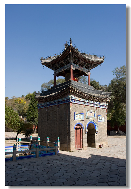 进山门之后,有钟、鼓二楼相对。左(东)为钟楼,右(西)为鼓楼。一般早晨先敲钟,以鼓相应;傍晚则先击鼓,以钟相应。