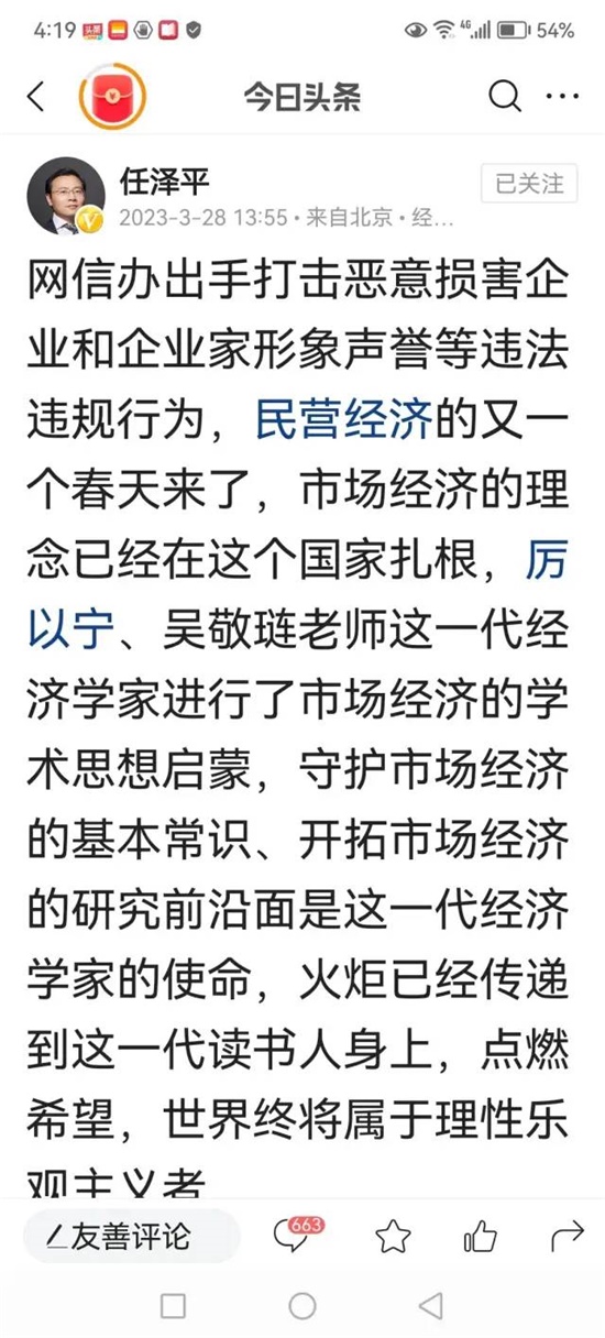 春节时,任泽平攻击司马南对民营企业“喊打喊杀”,打击民营企业信心。司马南让他提出证据,删除文章,否则将对薄公堂。任泽平立即删文回家练俯卧撑去了。现在又跳出来了。建议司马南继续对任泽平的官司,停止对司马的诽谤。停止了对任泽平的诉讼,是近来对司马南人身攻击的原因之一。