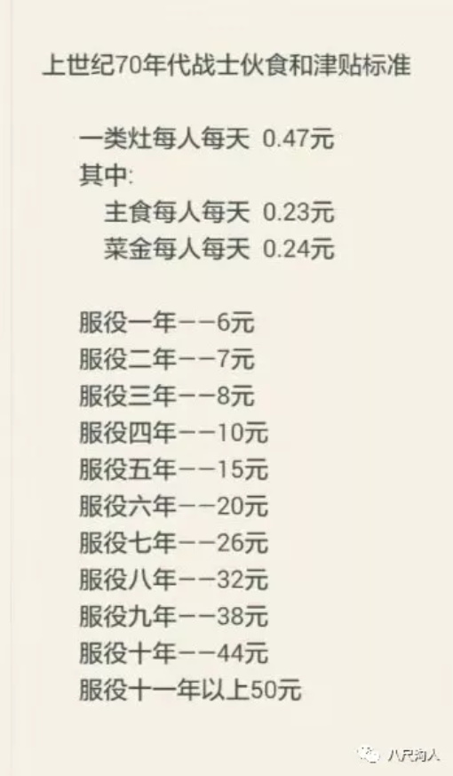 军马未动,粮草先行。军委对基层官兵的伙食一直十分关心。上世纪八十年代中期,曾提出"斤半加四两",即除粮食外,每位战士每天要达到一斤半蔬菜、一两肉、一两禽蛋鱼、一两豆制品、一两植物油。各部队抓落实可使了不少劲。改革开放以来,伙食标准经过20多次调整,最低的一类区一类灶从每人每天的几毛钱,增加到了十几元,逐步实现从温饱型向营养型转变。