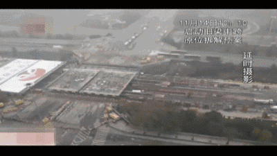 两个半小时,江阴芙蓉大道京沪高速跨线桥便被成功拆除。