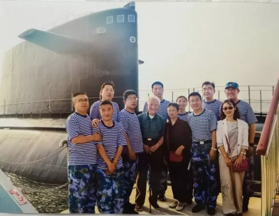 黄旭华夫妇在青岛与第一代退役核潜艇合影