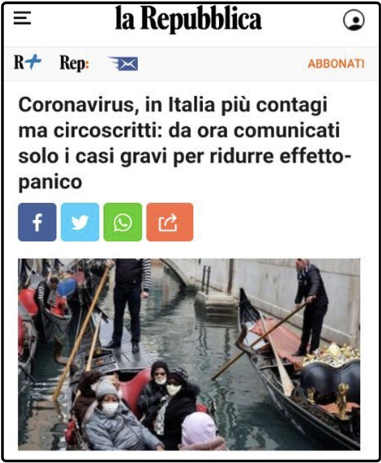 很多可能都听说了,2月28日当天,面对新冠肺炎确诊病例激增到650多例的现实,意大利当局为了避免激增的数据造成恐慌和民怨,紧急采取了新的核验方式:不再对无症状人员进行排查公示,仅通报临床症状感染者、重症病例和死亡患者数量,且病例的最终确诊必须送检首都罗马疾控中心,拉长了确诊通报流程。