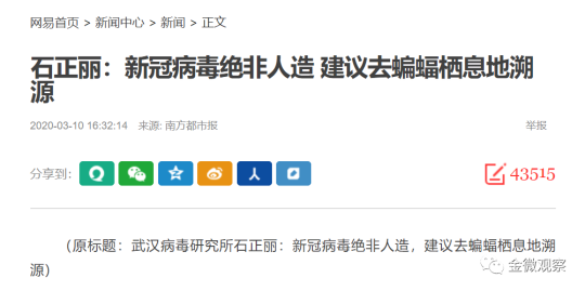 3月9日晚,中科院武汉病毒研究所新发传染病研究中心主任石正丽做客腾讯“2020科学抗疫”线上公益课堂,这几天,这个公开课的内容受到各大媒体的广泛报道。这些报道如《武汉病毒研究所石正丽:出现下一次蝙蝠型冠状病毒是大概率事件》、《石正丽:新冠病毒绝非人造 建议去蝙蝠栖息地溯源》等。