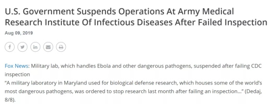 随后美国媒体报道了相关新闻:《美国政府关闭了没通过检查的陆军传染病研究所》