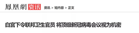 白宫下令,将新冠病毒会议,视为国家机密
