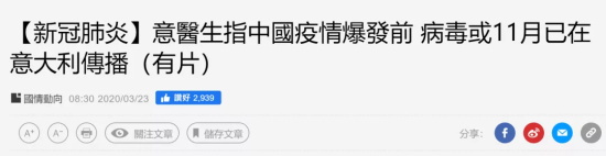 在中国疫情爆发前,11月份意大利也发现了与新冠肺炎一样病症的患者