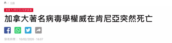 2020年2月4日,加拿大病毒学权威“弗兰克·普拉默”(Frank Plummer),在肯尼亚开会时突然无征兆死亡