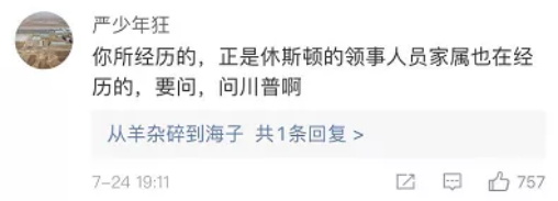 最让我痛心的是,全网流量都被这股妖风带跑偏了,甭看美国+台湾组合表演了,大家还是多关心一下我们在休斯敦的同胞吧。