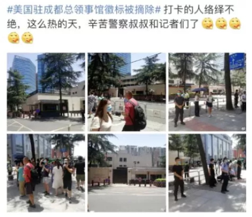 在线上的攻击是一部分,中国驻休斯敦总领事馆在线下遭受的攻击,根本不是成都领馆可比的。 国内成都群众无非就是放了挂鞭炮,跑去拍照而已,文明得很。