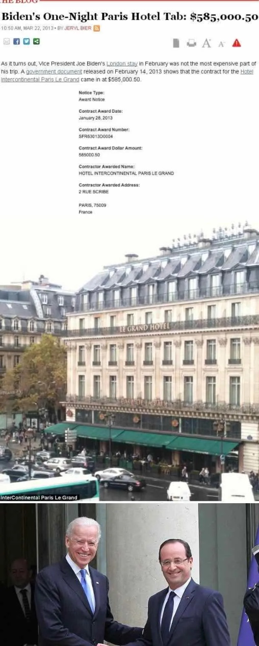 但其实,拜登在2013年2月访问巴黎时,在酒店一个晚上就花了58万多美元,遭到了美国各界的狠批。