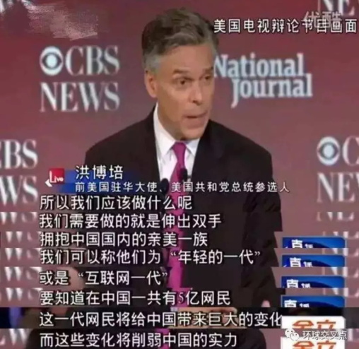 结果,在他卸任后,他在一次电视节目中,亲口承认拥抱中国国内亲美一代的目的,就是培养中国的“亲美势力”,并以此削弱中国的实力。