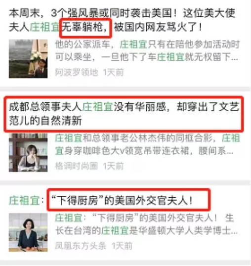 有文章说,大量中国网民对庄祖宜的社交账号进行了网暴攻击,而后者“明明”是一个善良、无害、爱生活,为“中美友谊”做出卓越贡献,甚至还“爱中国”的“大好人”,“你国网友”如此的“恶毒攻击”,该当何罪?
