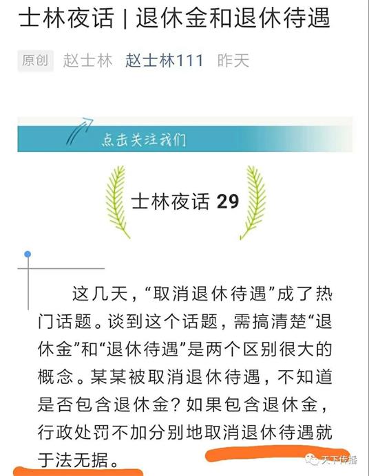 昨天还发一篇文章,为同党叫屈,称取消退休待遇,于法无据。