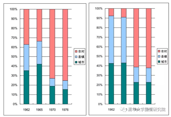 图. 1962-1976年间初中生构成(左图)和高中生构成(右图)
