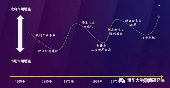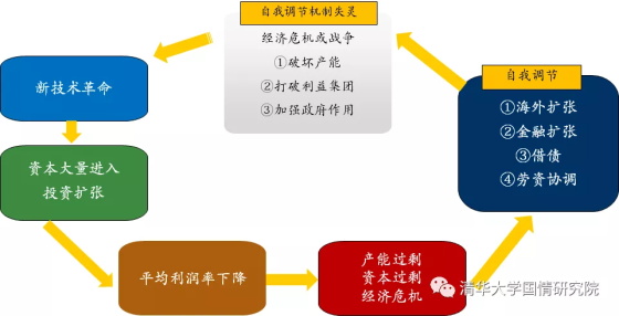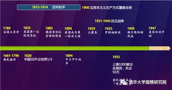 资本主义有自身无法逃脱的周期率,二十世纪的资本主义也没有跳出这样的周期率。今天,资本主义仍然是世界上占主体的社会制度,社会主义中国必须面对同资本主义的长期斗争和合作,因此我们必须了解资本主义周期率。资本主义周期率类似于自然界的一年四季。不同的是,资本主义的四季变化不是由地球转动导致的,而是由资本运动导致的。每个周期可以分为以下四个阶段。第一阶段好比春天。科学技术是第一生产力,革命也是解放生产力,这是资本运动的起点。技术革命和社会革命(如英国工业革命)让资本主义进入快速发展时期,大量资本进入市场,投资不断扩张。第二阶段好比从夏入秋。投资扩张到一定阶段,平均利润率必然会下降。这是《资本论》第三卷第三篇的核心结论。随着资本长期积累,工人的剩余价值和需求规模是相对有限的,赶不上资本和产能扩张的速度,导致利润率下降。利润率下降,伴随着产能过剩和资本过剩,出现经济危机,资本主义从繁荣的夏天进入萧瑟的秋天。第三阶段,秋天的自我拯救。面对经济危机,资本主义国家和资本不会坐以待毙,会想各种办法去缓解危机。主要是:第一,资本和市场向海外扩张,向世界其他地区推行资本主义。第二,资本向金融领域扩张,解决实体经济满足不了资本盈利的难题。第三,通过发行货币、财政刺激、借债等扩张性政策来刺激经济。第四,暂时缓和劳资矛盾。按照马克思主义的分析,出现产能过剩和资本过剩最根本的原因是资本占有了剩余价值,资本积累的速度超过劳动者购买力增长的速度,所以供给和需求产生了不平衡。一定程度缓和劳资矛盾,可以缓解危机,延长资本主义周期。第四阶段,全面危机的严冬。拯救危机的几种方式,在资本主义条件下,都不能从根本解决问题:海外扩张是有边界的,而且导致了全球失衡,这是更大的危机。向金融领域扩张,会产生巨大的系统性风险。财政、货币和债务刺激经济都只是延缓危机,并造成更大的风险。也就是说,在不触动生产关系的条件下,任何措施都不可能消除经济危机。一旦边界突破了、饱和了、再也容纳不了新的资本了,就会发生经济危机和战争。列宁说过:“战争引起革命,革命制止战争。”经济危机和战争起到破坏产能、破坏垄断资本的作用,有产者在战争的时候受到损失最大,资产份额会大幅度下降。另外,在经济危机和战争的时候,政府会发挥更大的作用,可以缓和并调解社会的矛盾、进行再分配。此时,又会产生新的一轮社会革命,又会开始一个新的周期。自十八世纪资本主义制度确立至今,资本主义还没有跳出这个周期率,历史上至少出现过三次这样大的周期。这三次周期又都和中国发生了共振。我们画了一张图,展示自清朝末年以来中国历史和世界历史上的大事对比。资本主义第一个繁荣周期出现在十八世纪末到十九世纪上半叶,这时正是中国从封建社会第三个高峰康乾盛世迅速滑向衰落的时代。1789年法国大革命爆发,七年后1796年乾隆皇帝退位。1821年即道光元年,中国的GDP还占世界三分之一。四年之后的1825年,英国就发生了典型资本主义条件下的第一次经济危机。19世纪初期就是我们所说的资本主义长期周期的“春天”,但很快带来尖锐的社会矛盾,为了缓解生产过剩和市场需求不足的矛盾,1840年爆发了第一次鸦片战争。但对外扩张并没有缓解资本主义矛盾,欧洲工人运动不断兴起,马克思主义应运而生,《共产党宣言》1848年发表。为了缓和社会矛盾,资本主义采取了自我调整措施。1883年德国在历史上首创了社会保险制度。同时,资本主义制度还在向世界各地扩张。1861年,即中国的咸丰11年,同年美国发生了南北战争,打破了奴隶制对资本主义发展的束缚,美国开始了资本主义的繁荣周期。1894年是一个标志性年份。这一年,离中国GDP占世界三分之一的康乾盛世还不到一百年,中日甲午战争爆发,中国陷入了山河破碎、风雨飘摇的深渊。也是在1894年,美国成为世界第一经济大国,从此保持这一地位直到今天,已经一百二十五年了。1894年的两件事是一个历史的巧合。抚今追昔,今天我们要实现中华民族伟大复兴,确实是百年未有的大变局。资本主义繁荣的第二个周期,到1929年的“大萧条”宣告结束。“大萧条”的本质是资本主义经济危机,资本主义为了缓解危机,同样采取了对外扩张的办法,于是爆发了两次世界大战。日本侵华战争,既是出于军国主义本性,也是出于资本主义扩张的需要,所以资本主义不可能实现世界和平。在全球资本主义强国的挤压下,中国成为资本主义体系的“边缘国家”,经济发展有强烈的依附性和殖民地特征。所以,国民党所谓的“十年建设”并没有取得什么成果。在全球危机冲击下,1935年,上海一千多家企业倒闭,50万人失业。这证明中国不可能通过资本主义发展起来。资本主义第三个繁荣周期发生在二战之后。1945年雅尔塔体系形成,1947年“铁幕演说”标志美苏冷战开始。在社会主义国家制度竞争的压力下,西方进行了自我调整。开始了一轮新的繁荣周期一直到2008年全球金融危机才宣告结束。由于新中国七十年基本同这一轮资本主义繁荣周期的时间重叠,而今天的百年未有大变局本质上是资本主义繁荣周期的结束。这一繁荣周期的上升阶段是1950年代至1970年代,可以称之为“凯恩斯妥协”。当时,西方资本主义国家