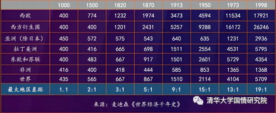表. 世界各地区人均GDP及差距(1990年国际元)