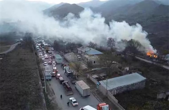 可在亚美尼亚就是另一幅场景了:纳卡当地的亚美尼亚族在撤离前烧毁了房屋,誓言“一草一木也不留给阿塞拜疆侵略者”,一时间,不少村落火光冲天。