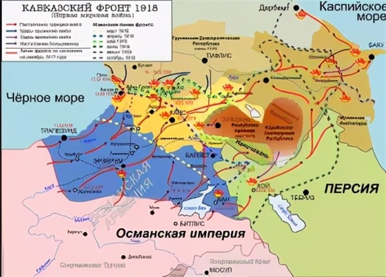 之后到了1917年十月革命,沙俄瓦解,包括格鲁吉亚、亚美尼亚、阿塞拜疆在内的外高加索一度建立独立的民主共和国,期间亚阿两国就在开始争夺纳卡地区发生冲突,期间奥斯曼土耳其军队也侵入纳卡。