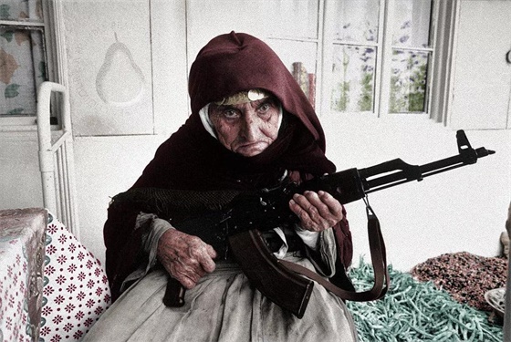(1992年,106岁的纳卡亚美尼亚族老人手持AK步枪要保护自己的屋子)