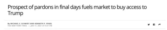 (《最后的赦免机会推动市场花钱接近特朗普》,《纽约时报》报道截图)