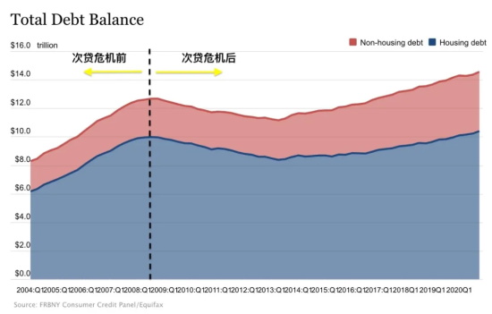 美国居民总债务 2004-2020