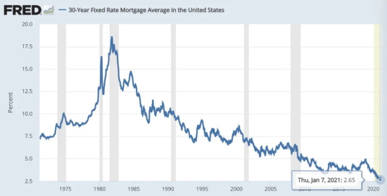 美国30年期房贷利率走势 1971-2021