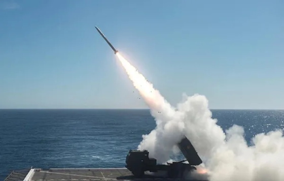 近年来,美国海军陆战队一直探索一些新的作战方式,图为海军陆战队“海马斯”火箭炮在“安克雷奇”号船坞登陆舰的飞行甲板上试射火箭弹。