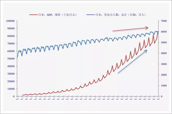 ▲1954-1984年日本GDP与劳动力人数反差,图源:中国银河证券研究院