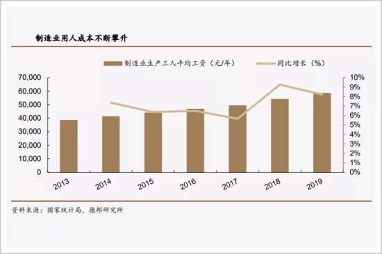 ▲我国制造业用人成本不断攀升图源:德邦研究所
