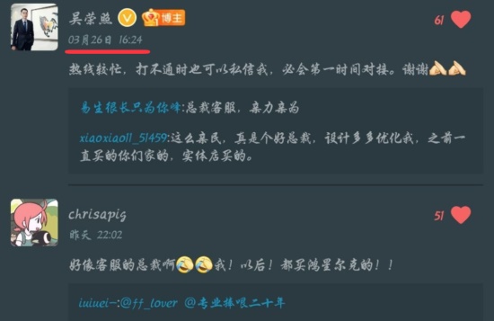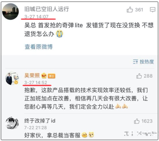 而在今年的3月份,还有人发现鸿星尔克的老板竟然像客服一样,在网络上给消费者当起了对接员: