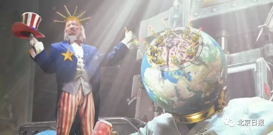 昨日知名CG画家@乌合麒麟发布新作《神明改造》剑指美国德堡生物实验室满满的细节耐人寻味细节一被束缚的巨人画的正中央是一个被束缚在铁椅上的巨人从头部和手部来看这个巨人即是“地球”它被捆绑在铁椅上左臂上的四道枷锁分别是美元、战机、芯片和推特指美国在全世界进行金融霸权、军事霸权科技霸权、舆论霸权细节二开颅手术打扮成自由女神形象的美国正在给地球做开颅手术大脑部分已经插满了通电装置画作的主题“I grant you a new corona”意为“我为你加冕”结合上图通电装置环绕一圈形成王冠的外形这些装置顶端跟自由女神帽端一样闪着红色的光指美国打着“自由、民主”这些冠冕堂皇的理由 实际上不过是在世界上进行“洗脑手术”细节三插入心脏的针管画面的右下方是一个穿着日本法西斯军服挂着德堡臂章的军人手持粗壮的针管扎进“巨人”的心脏位置针管里的液体跟旁边巨大病毒实验器皿里绿色的液体颜色一致细节四巨人胸前的X光片巨人的胸前是一张肺部X光片上面的数字与目前美国的新冠病毒死亡病例数接近左下角像新增病例趋势图X光片的中央一名穿着纳粹军服同样带着德堡臂章的军人用画笔写上“China”指的是美国德堡实验室将新冠肺炎疫情甩锅给中国据约翰·霍普金斯大学数据,截至7月31日20时21分,美国累计确诊新冠肺炎超3494万例,死亡超61万人。细节五挂满尸体的病毒实验器皿自诩“人权卫士”的美国身后的实验器皿揭露了真相器皿最上面贴着德堡的标志指进行这项手术的地点正是美国德特里克堡生物实验室器皿中盘根错节的树枝末端是一个个黑色的尸体暗示着这项实验背后牺牲了无数无辜者的生命底部两个大玻璃罐子里左右各泡着一个人头分别像日本军人和德国纳粹里面还漂浮着很多病毒暗示这一实验以他们曾进行的人体实验为基础细节六墙上的标语在这套巨大的机器上面有一处黄色的标语意为“感染区域只有被授权的人才能进入”指美国的这一行为不透明未向国际社会公开看完这些细节回过头来看这幅作品的标题《神明改造》更觉得无比讽刺来源:微信公众号“北京日报”(ID:Beijing_Daily)
