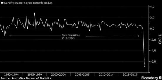 过去数十年间,澳大利亚的经济繁荣主要依托于地广人稀,靠出口农产品,矿产资源等,以及吸引外国人投资该国楼市和教育移民的运作模式,从而使经济保持增长,但据澳大利亚统计局在一周前发布的最新报告显示,受新冠状病毒、外国投资下降和全球经济增长放缓等综合影响,GDP出现有史以来的持续下降,陷入了近30年来最疲弱的经济增长表现,这在新冠变种病毒在该国持续蔓延使得多州经济封闭的背景下将变得更加明确。