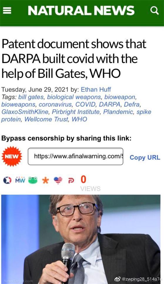 据美国自然新闻6月29日报道披露,一项专利显示,新冠病毒(Covid-19)在公开释放传播近两年前就已问世,证明它不是在菜市场的蝙蝠中随机出现的。