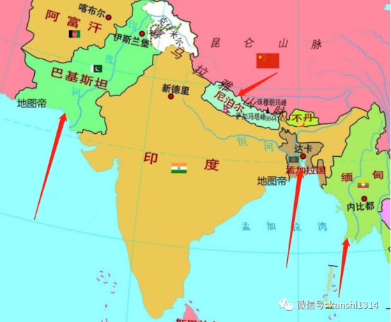 大家可以看看上面三条消息,基本都是在印度此次挑衅之后发生的,如果还不明白这代表什么,大家可以去看看地图,尼泊尔、巴基斯坦和孟加拉国都在什么位置。