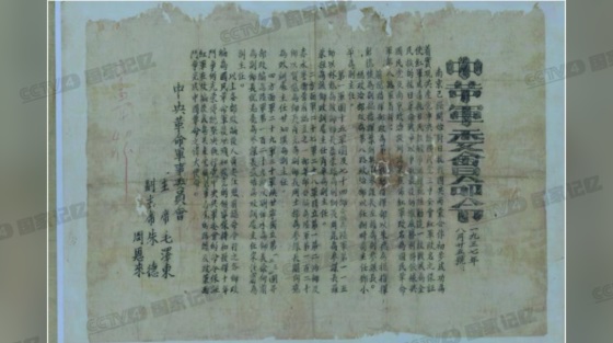 图:中革军委会发布红军改编为国民革命军第八路军的命令