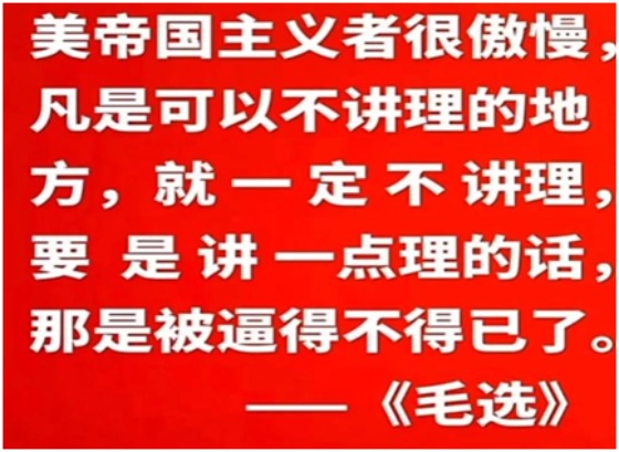 毛泽东主席当年曾深刻的指出:“美帝国主义者很傲慢,凡是可以不讲理的地方就一定不讲理,要是讲一点理的话,那是被逼得不得已了”。[1]