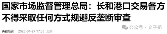 长和港口交易不得采取任何方式规避反垄断审查,否则将承担法律责任。