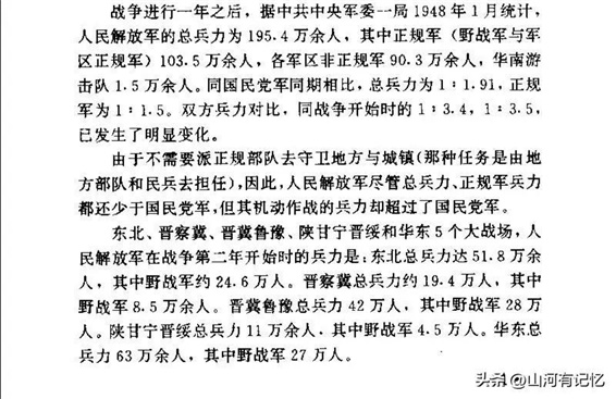 另外,东北蒋军从军级番号数量不算多,但战斗力比较齐整。除新1、新6军这样的五大主力外,第71、52、53、54、13军都有相当的战斗力,滇军60、93军实力也不弱,最菜的也就是大半重建的49军。