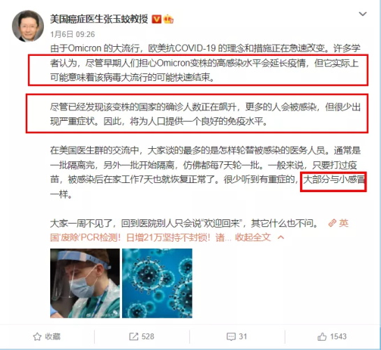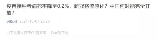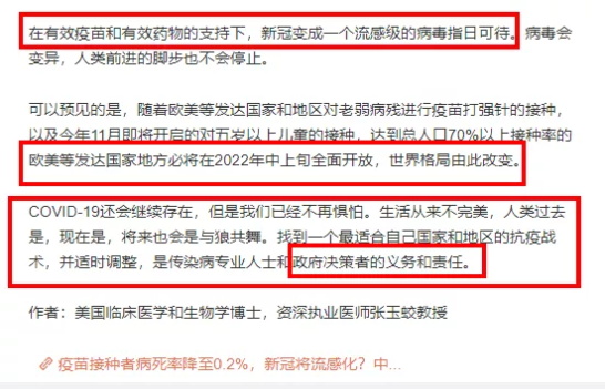 北京时间去年10月7日“凤凰网”发布了这个美国医生的一篇文章《疫苗接种者病死率降至0.2%,新冠将流感化?中国何时能完全开放?》。