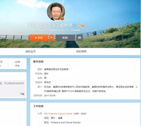 近日,一个美国华裔癌症专家张玉蛟,引起网民的关注。