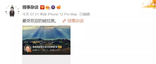 之所以被网民关注,倒不是因为他的高超医术,而是他疫情以来的言论,特别是去年以来持之以恒的暗示或呼吁我们国家要“认清现实”、“与病毒共存”。
