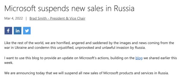 此前,微软已从Windows 11/10应用商店中下架俄罗斯媒体「今日俄罗斯电视台」的移动应用,并禁止在俄罗斯政府支持的媒体上投放广告。