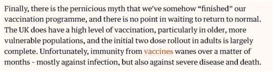 而在英国,英国《卫报》于上周刊登了伦敦大学学院临床研究部门主任佩格尔(Christina Pagel)撰写的一篇分析英国最近感染人数暴增的文章。