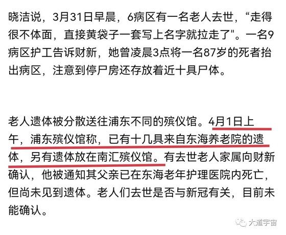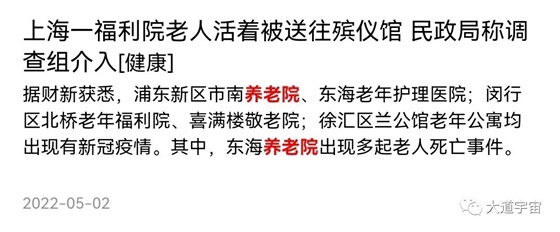2022年4月2日,财新网有篇报道《财新|新冠侵袭东海养老院》,称东海养老院疫情多人阳性,至少十几人死亡。
