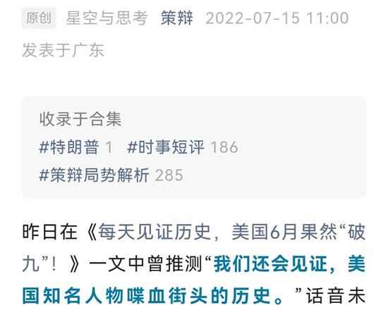 在上个月中旬,策辩跟踪研究美内部形势后,曾明确指出下半年我们将见证美国知名人物喋血街头的历史。