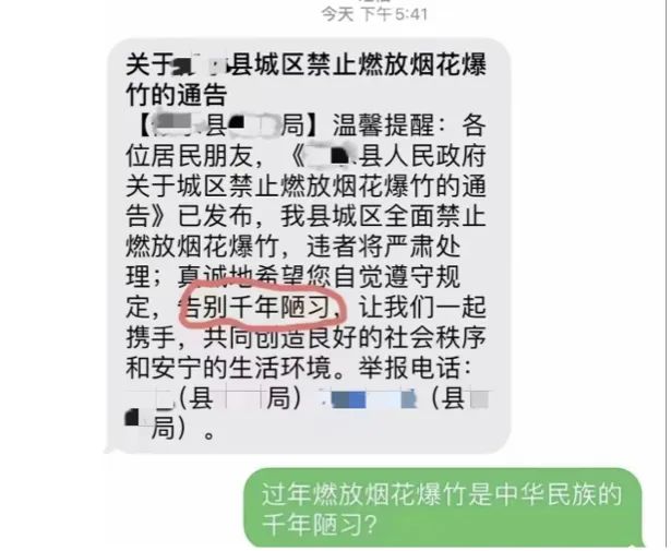每个城市都有自己的规定,既然已经出台相关规定,我们无意违反之,但不让放也就算了,把放鞭炮视为千年陋习,无论如何是不妥的。