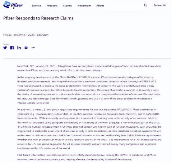 此视频出来后,在全球互联网上快速播放量超过2000万,由于影响巨大,美国参议员都要求辉瑞必须给个说法,现在你告诉我视频是假的?而辉瑞在1月27日官方紧急做了说明,原文截图如下: