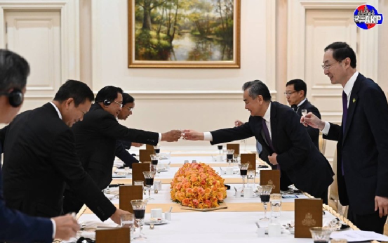 王毅会晤现任首相洪森时,现场有副首相贺南洪、副首相兼外交大臣布拉索昆陪同。王毅会晤候任首相洪玛奈时,现场有候任副首相孙占托、候任副首相兼外交大臣宋金达陪同。