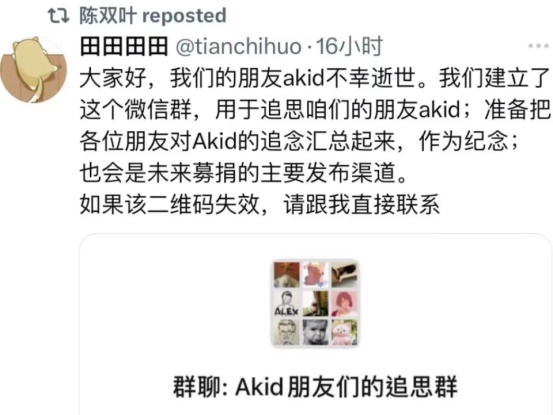 Akid在饿到皮包骨头的时候,还不忘诅咒自己的祖国“饿殍遍野”,饿到离死不远的时候,还不忘要“核平”我们……它的那些“朋友”们,在它病骨支离的时候,没有一个出来救济,等到她死了,居然一个个跳出来写悼文、收捐款……更离谱的是,Akid死后没多久,有人发现它留下的6000多美元的“数字资产”,被它的“朋友”迅速转走。