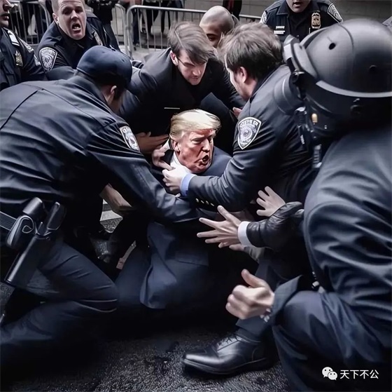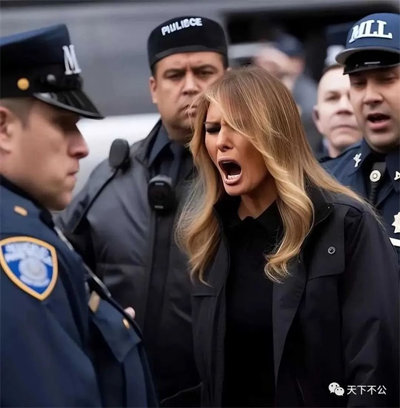 AI生成的特朗普被逮捕时,原第一夫人愤怒表情的图片